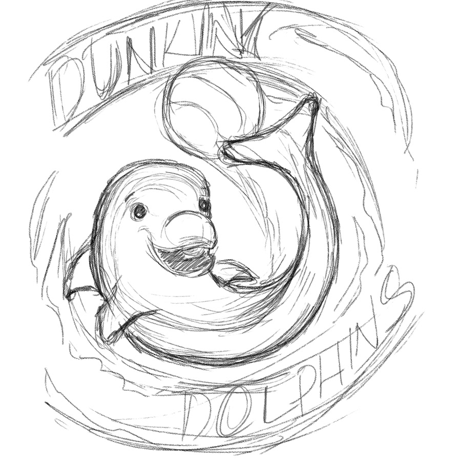 Dolphin Mascot art for t-shirts for a kids basketball team.